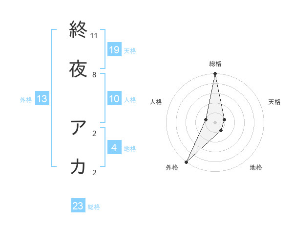 終夜 アカさんの外格は13画の5点!