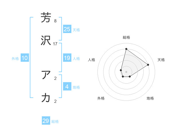芳沢 アカさんの総格は29画の4点!