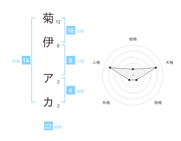 菊伊 アカさんの天格は18画の4点!