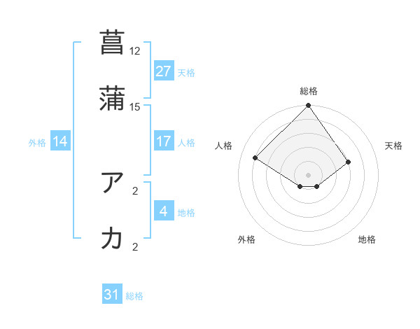 菖蒲 アカさんの総格は31画の5点!