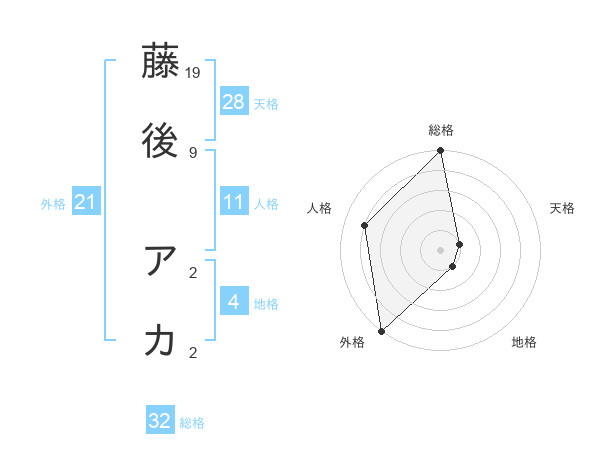 藤後 アカさんの外格は21画の5点!