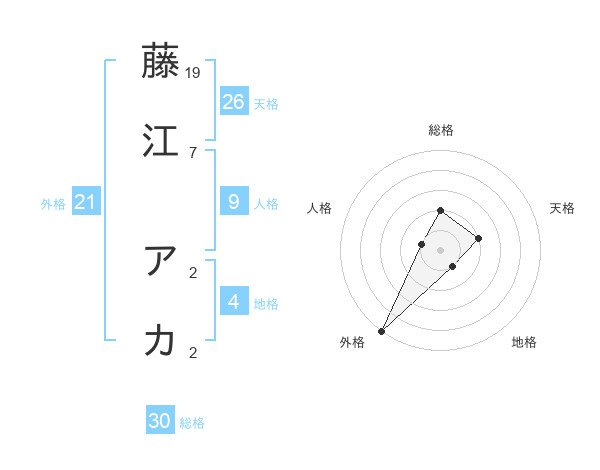 藤江 アカさんの総格は30画の2点!