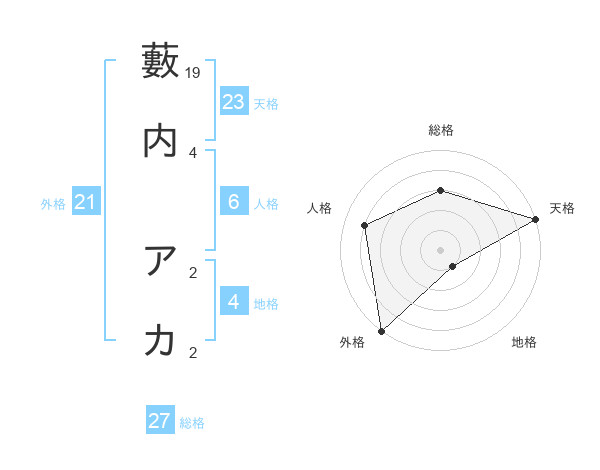 藪内 アカさんの天格は23画の5点!