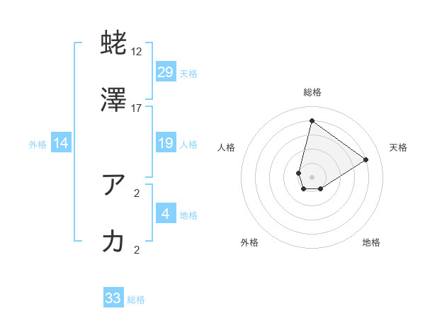 蛯澤 アカさんを姓名の画数から五運を鑑定