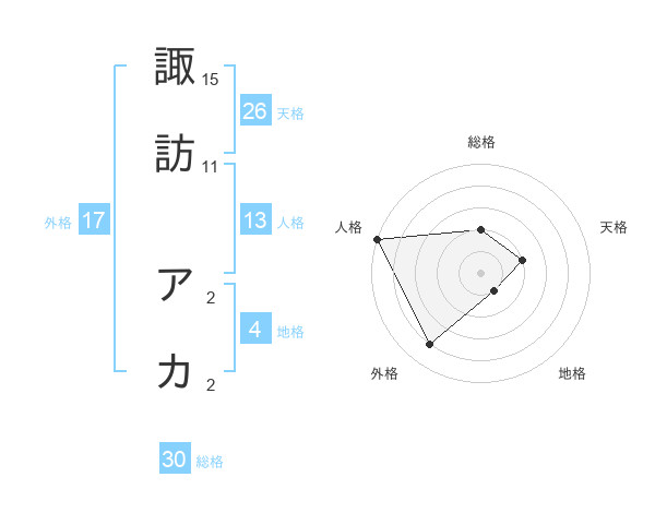 諏訪 アカさんの外格は17画の4点!