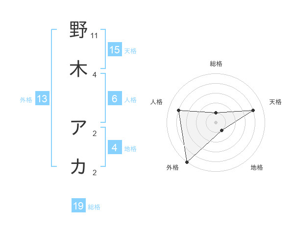 野木 アカさんの外格は13画の5点!