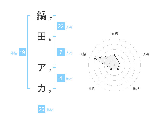 鍋田 アカさんを姓名の画数から五運を鑑定