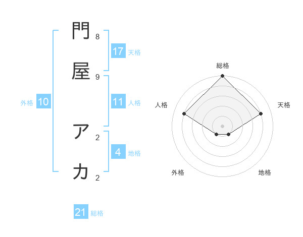 家系が持つ宿命的な運勢を表します。祖先から受け継いだ苗字ですので自分の力が及びません。家柄を象徴します。