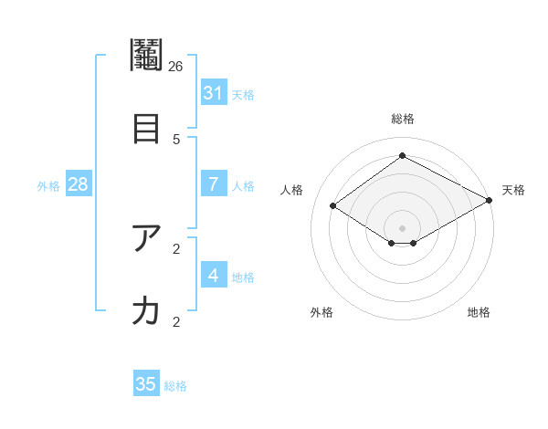鬮目 アカさんの天格は31画の5点!