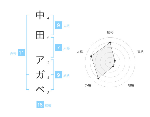 中田 アガベさんの総格は18画の4点!