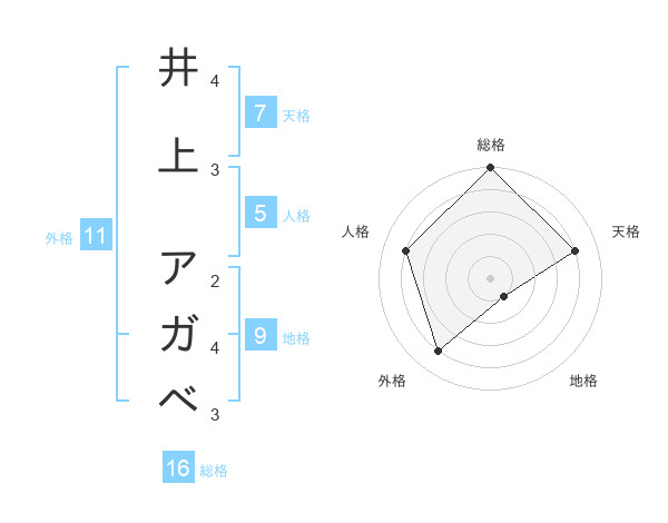 井上 アガベさんの総格は16画の5点!
