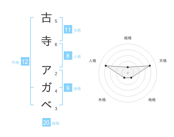 古寺 アガベさんの総格は20画の1点!