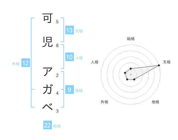 可児 アガベさんの天格は13画の5点!