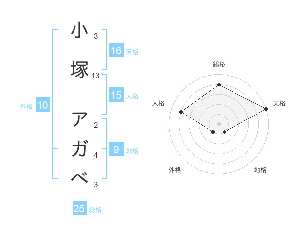 小塚 アガベさんの天格は16画の5点!