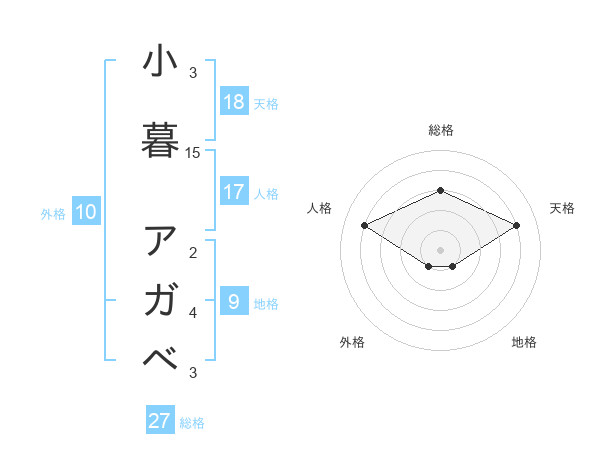 小暮 アガベさんの総格は27画の3点!