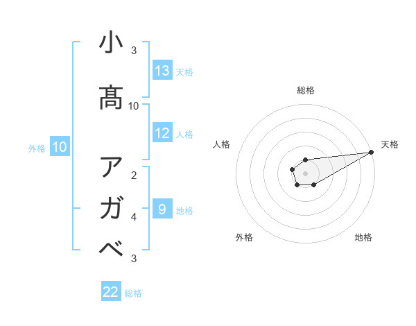 小髙 アガベさんを姓名の画数から五運を鑑定