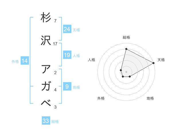 杉沢 アガベさんを姓名の画数から五運を鑑定