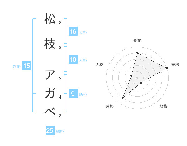 松枝 アガベさんの天格は16画の5点!