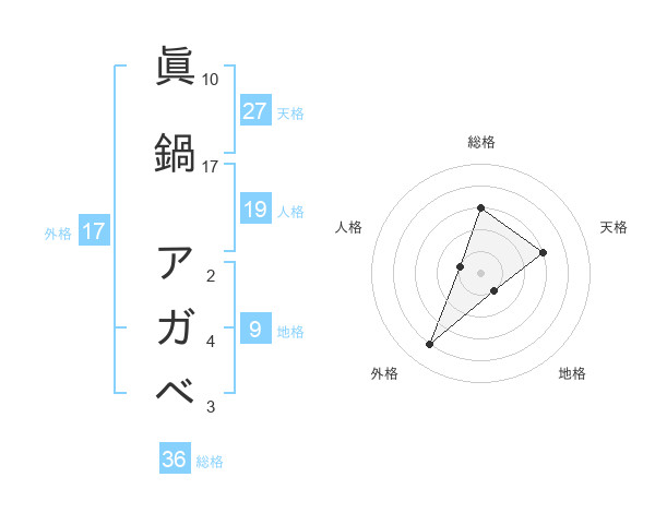 眞鍋 アガベさんを姓名の画数から五運を鑑定