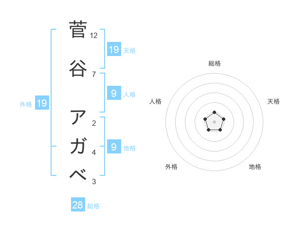 菅谷 アガベさんの天格は19画の1点!