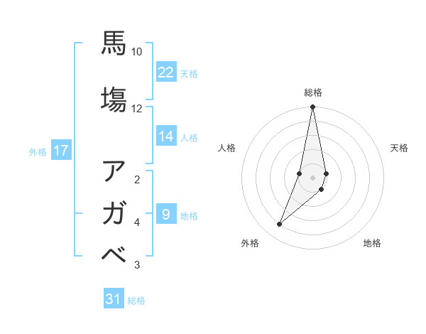 馬塲 アガベさんの総格は31画の5点!