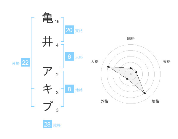 亀井 アキブさんを姓名の画数から五運を鑑定