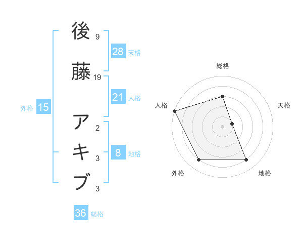 後藤 アキブさんの天格は28画の1点!