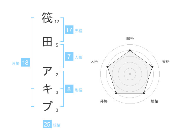 筏田 アキブさんを姓名の画数から五運を鑑定