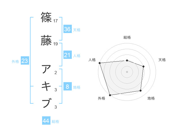 篠藤 アキブさんを姓名の画数から五運を鑑定