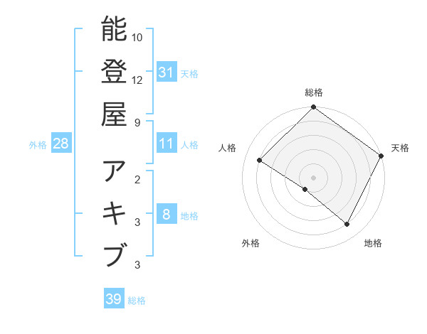 能登屋 アキブさんを姓名の画数から五運を鑑定
