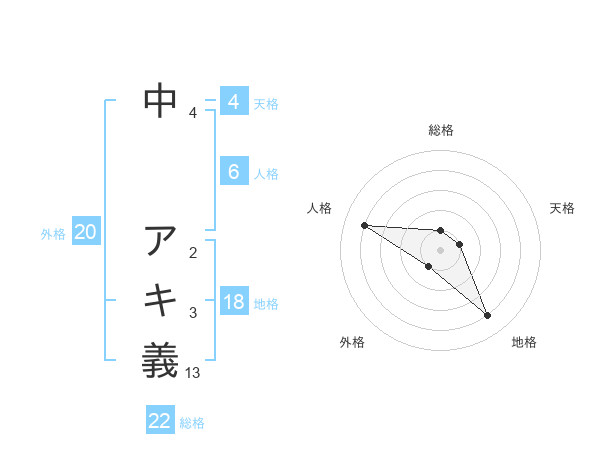 中 アキ義さんの地格は18画の4点!