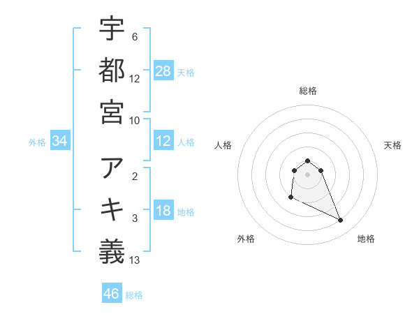 宇都宮 アキ義さんの総格は46画の1点!