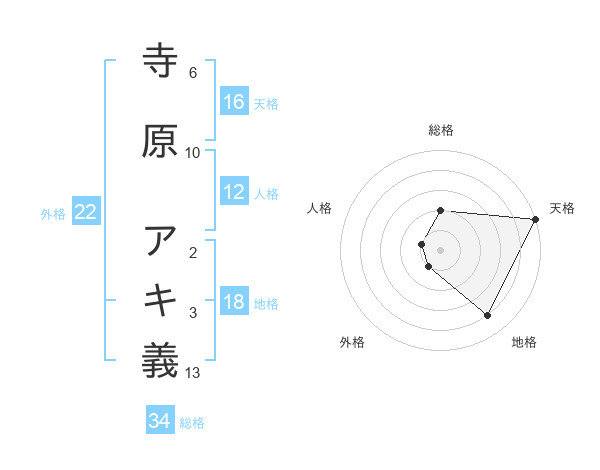 寺原 アキ義さんの天格は16画の5点!