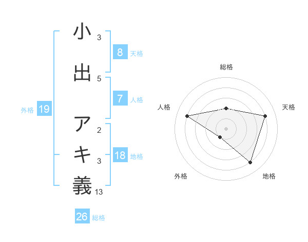 小出 アキ義さんを姓名の画数から五運を鑑定