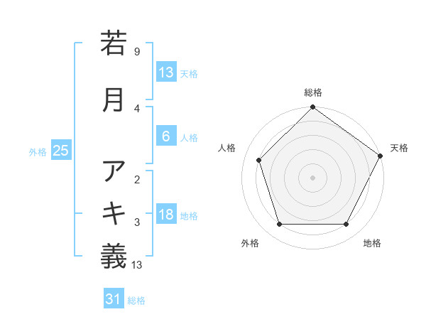 若月 アキ義さんを姓名の画数から五運を鑑定