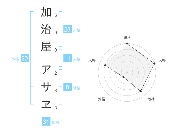 加治屋 アサヱさんを姓名の画数から五運を鑑定