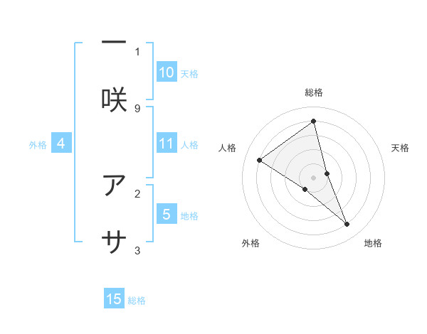 一咲 アサさんの総格は15画の4点!
