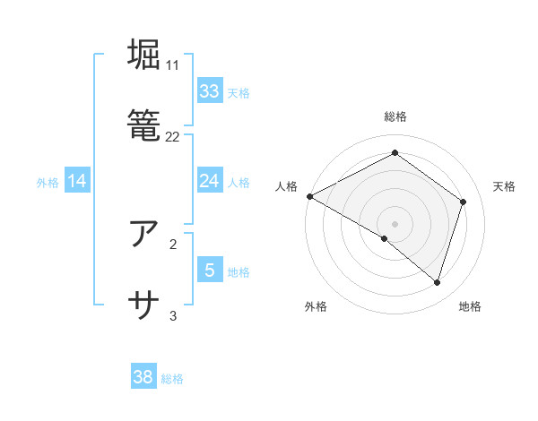堀篭 アサさんの総格は38画の4点!