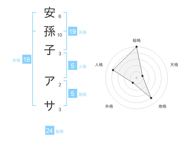 安孫子 アサさんを姓名の画数から五運を鑑定