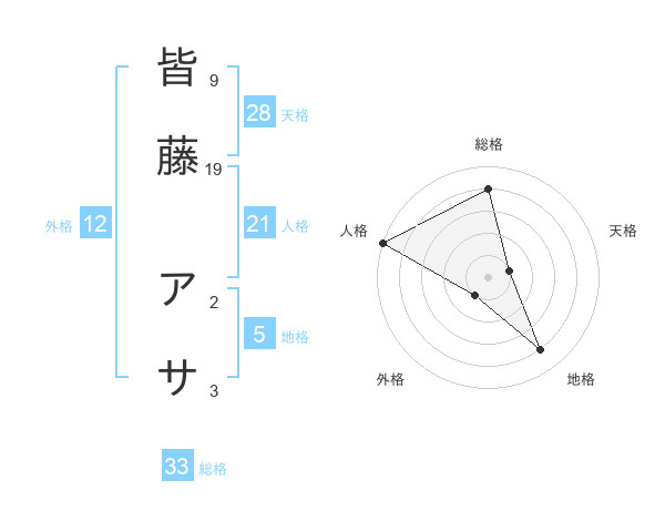 皆藤 アサさんの人格は21画の5点!