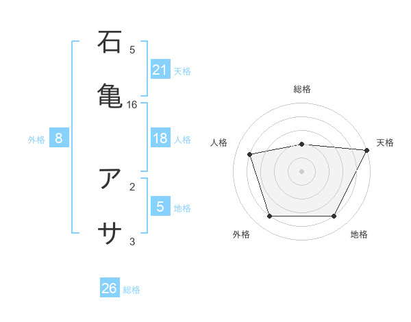 石亀 アサさんの天格は21画の5点!