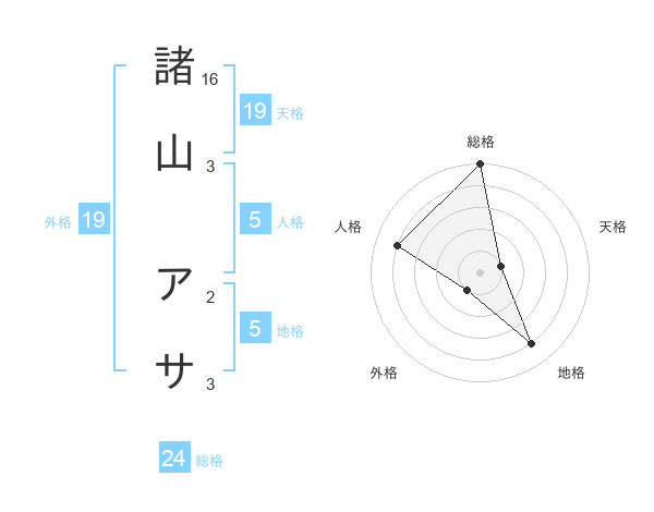 諸山 アサさんの総格は24画の5点!