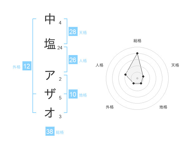 中塩 アザオさんを姓名の画数から五運を鑑定