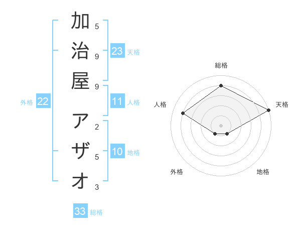 加治屋 アザオさんを姓名の画数から五運を鑑定