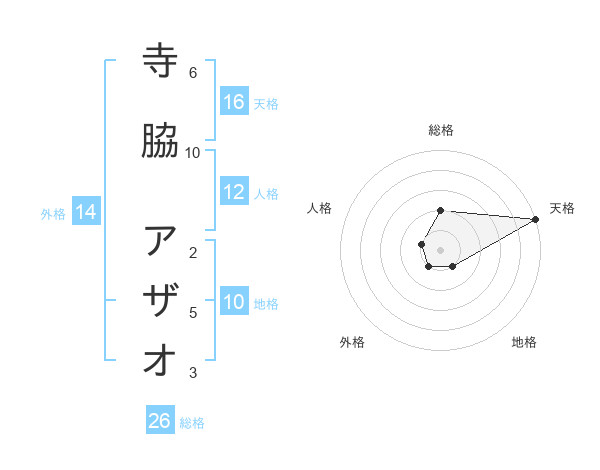 寺脇 アザオさんの天格は16画の5点!