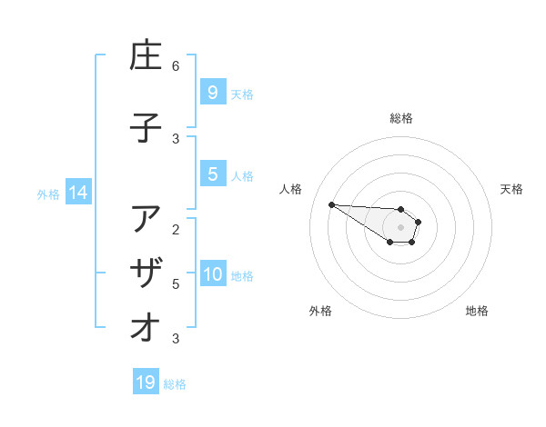 庄子 アザオさんの総格は19画の1点!