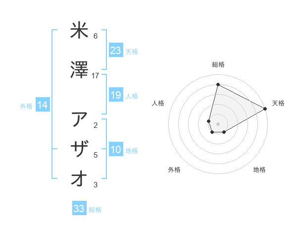 米澤 アザオさんの天格は23画の5点!