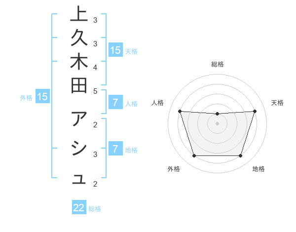 上久木田 アシュさんの天格は15画の4点!