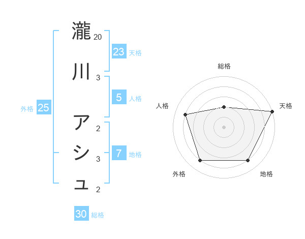 瀧川 アシュさんを姓名の画数から五運を鑑定