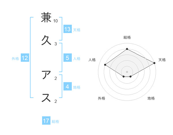 兼久 アスさんの総格は17画の4点!
